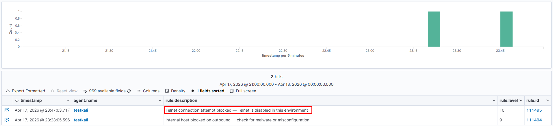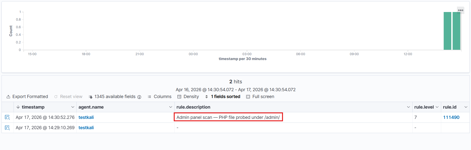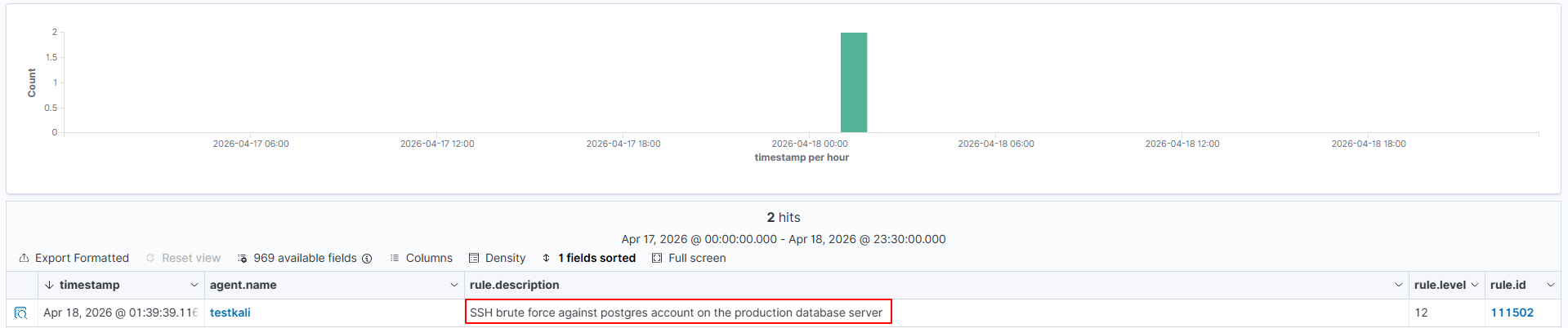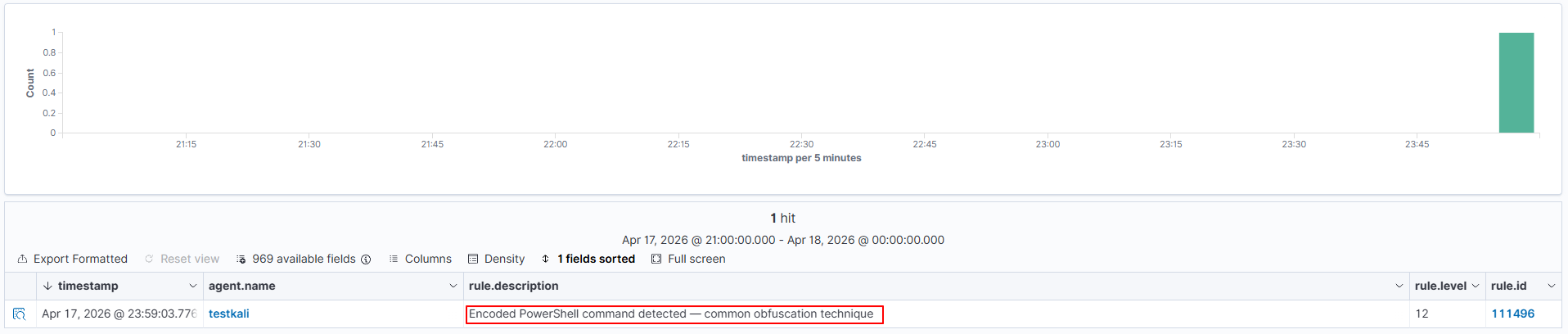 firedtimes: '1'Phase 3 is what you want. If your rule ID, level, and description are showing up there — you're done, it works. If Phase 3 is empty, or showing the wrong ID, something in your match string isn't matching. Casing, a space, a special character. It's almost always one of those. Go character by character. Ctrl+C to exit when you're finished.